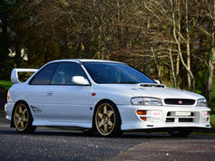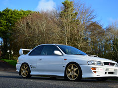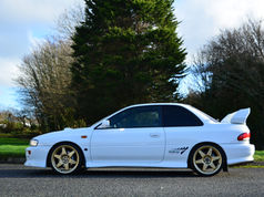 Rare JDM only Impreza WRX STi v4 Type R 2 door in white with gold alloys and the STi grey/red interior. Of the 1299 v4 Type R made for the JDM market, we understand this to be 1 of only 230 supplied in Feather White.